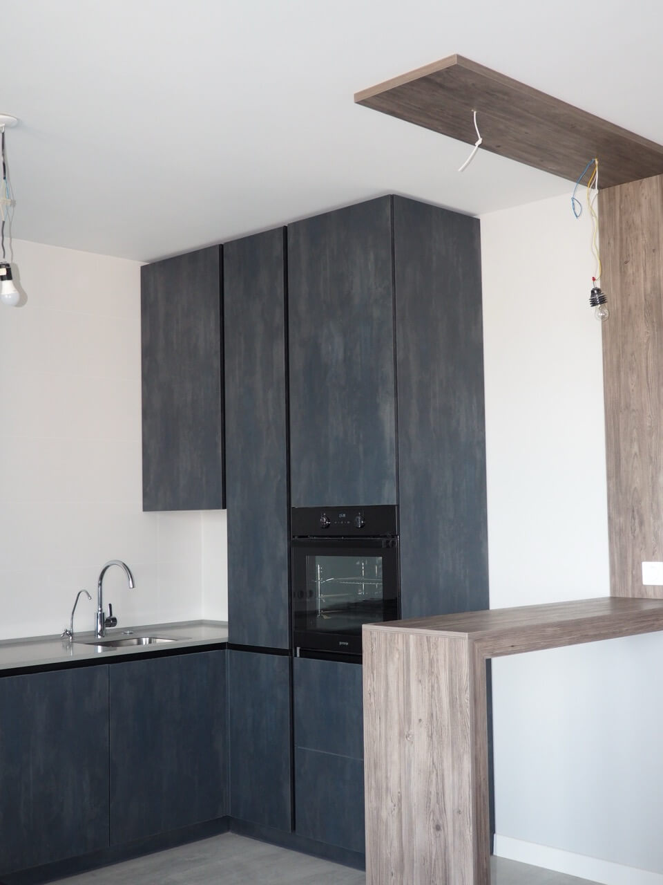Этот кухонный гарнитур сочетает в себе современный дизайн и высокое качество. Корпус изготовлен из ЛДСП Эггер серого цвета, дополненного панелями CLEAF, что придает кухне изысканный и стильный вид. Фасады также выполнены из CLEAF, обеспечивая единообразие и гармонию в дизайне.