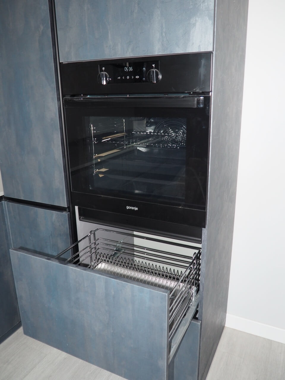 Фурнитура от Блюм обеспечивает плавное и тихое движение дверей и выдвижных ящиков, что улучшает комфорт при использовании кухни. Этот кухонный гарнитур - прекрасный выбор для тех, кто ценит современный дизайн, высокое качество и практичность.