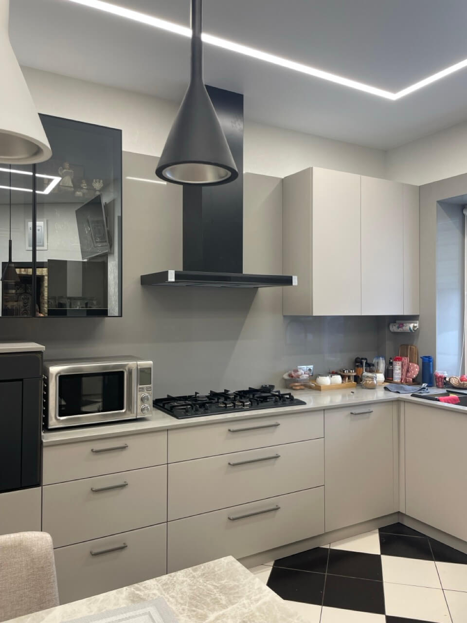 Столешница из кварца не только добавляет элегантности, но и гарантирует прочность и долговечность. Ее гладкая поверхность устойчива к царапинам, пятнам и высоким температурам, что делает ее идеальным выбором для повседневного использования.