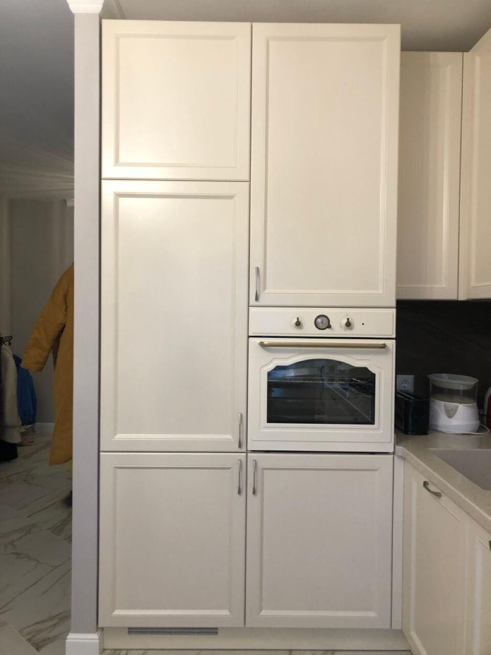 Фурнитура от Блюм обеспечивает плавное и тихое движение дверей и выдвижных ящиков, что улучшает комфорт при использовании кухни. Этот кухонный гарнитур - прекрасный выбор для тех, кто ценит минималистичный дизайн, высокое качество и практичность.